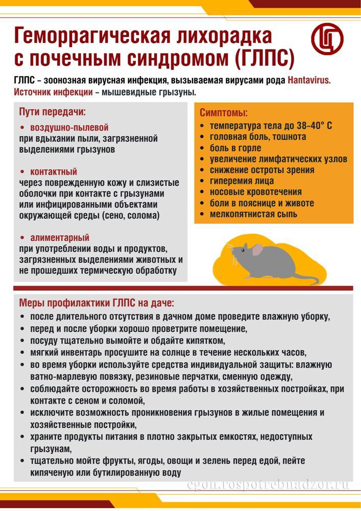 При появлении признаков заболевания после проведения работ, связанных с пылеобразованием, обратитесь за медицинской помощью и сообщите о фактах возможного контакта с мышевидными грызунами.
