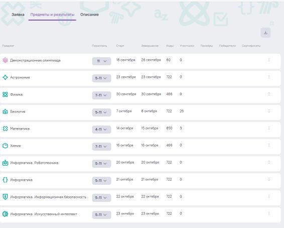 График проведения школьного этапа олимпиад на платформе Сириус |