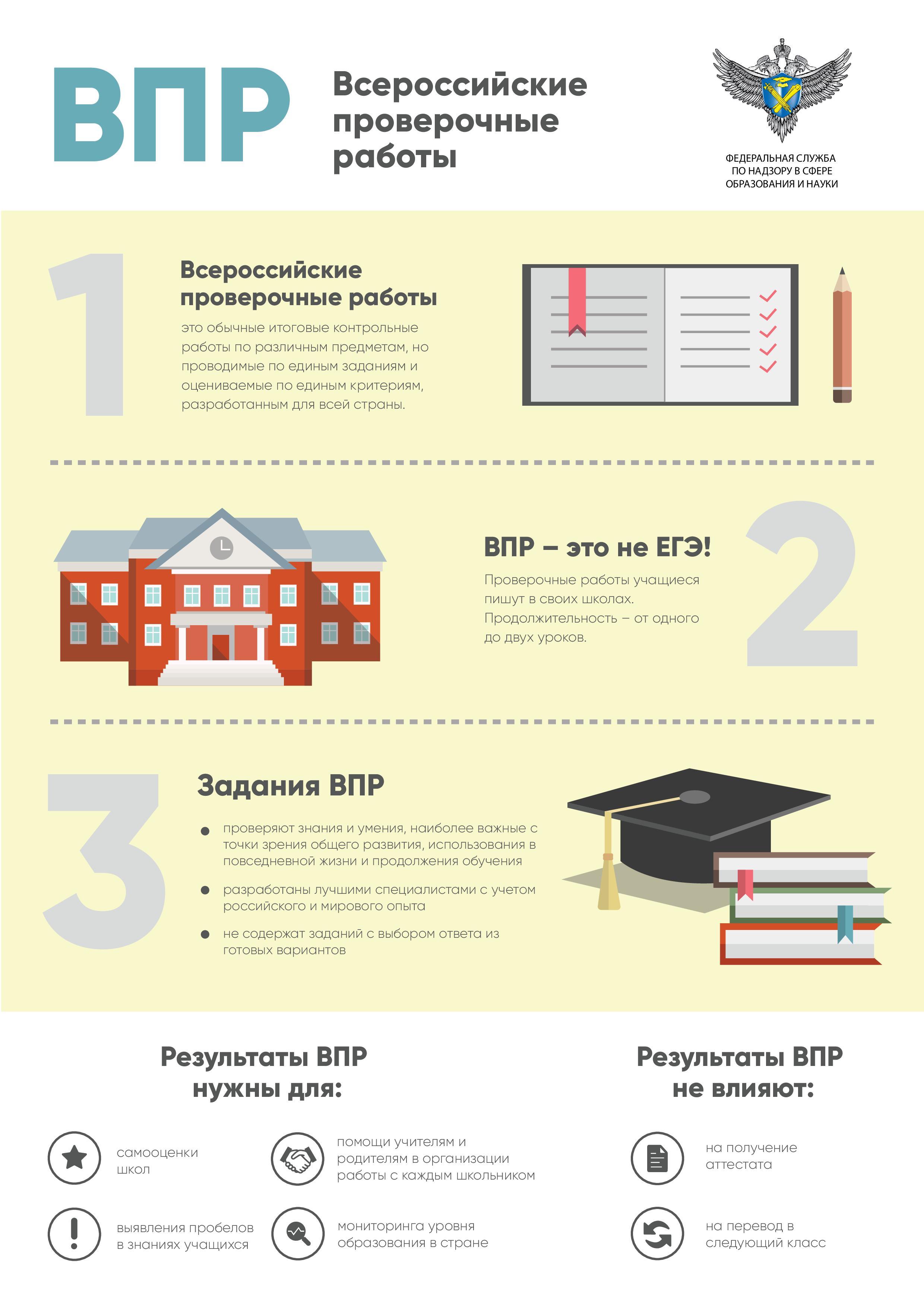 Всероссийские проверочные работы (далее - ВПР) проводятся с целью мониторинга качества подготовки обучающихся общеобразовательных организаций. ВПР не требуют специальной подготовки.